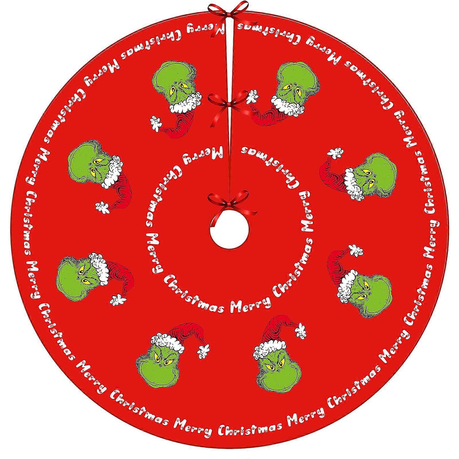 Grinch Tree Skirt, Red & Green Christmas Tree Skirt - Soft Holiday Decoration, compatible with classic Grinch decor