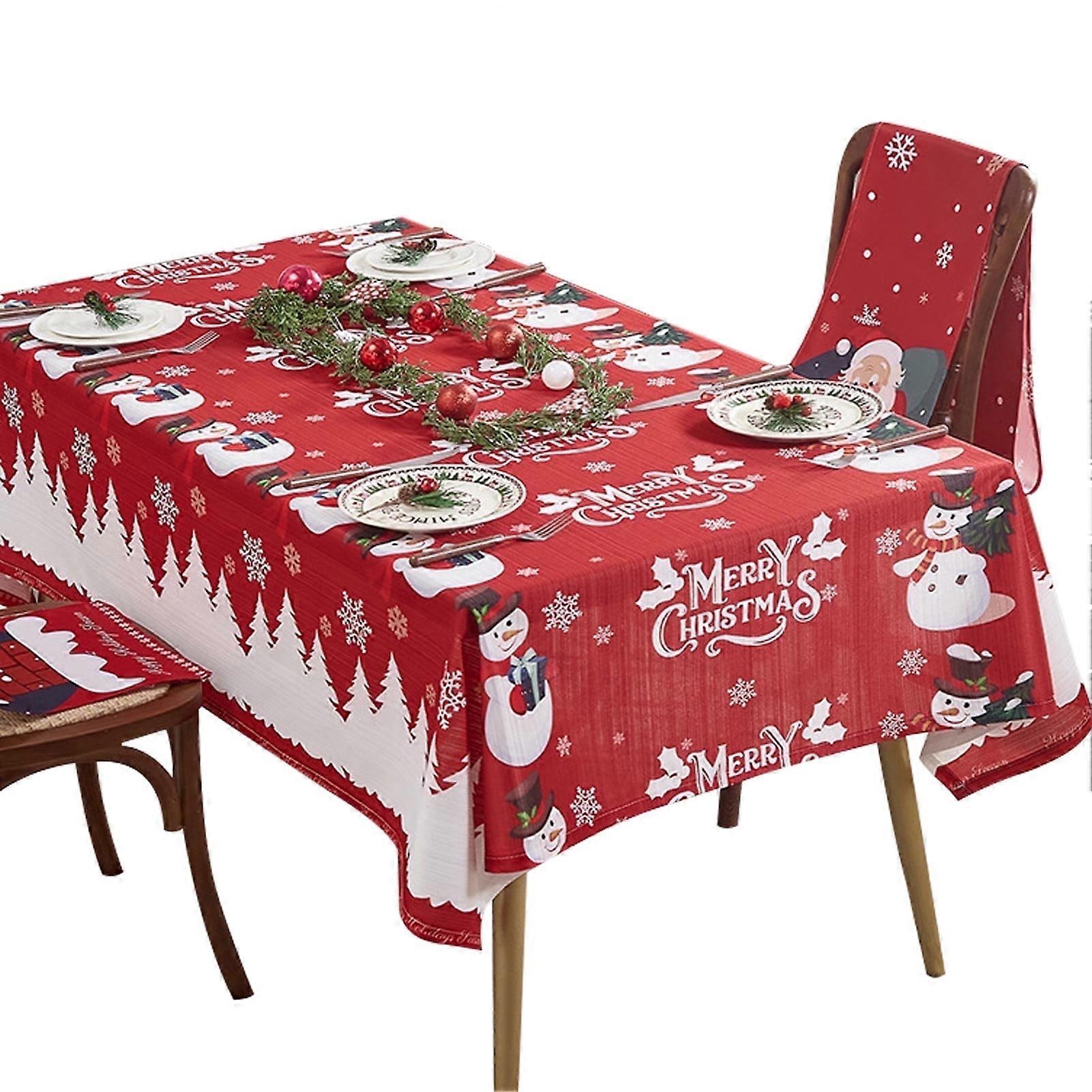 HonorHut Christmas Printed Tablecloth 55x87" Red, Stain Resistant, Green Tree Holiday Cover, Rectangular Table Cloth
