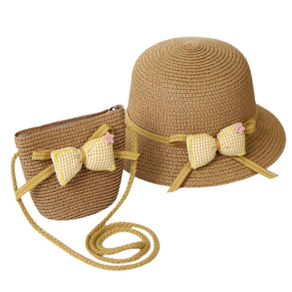 52-54cm hat circumference children's sunscreen sun hat summer beach straw hat sun hat and straw bag set