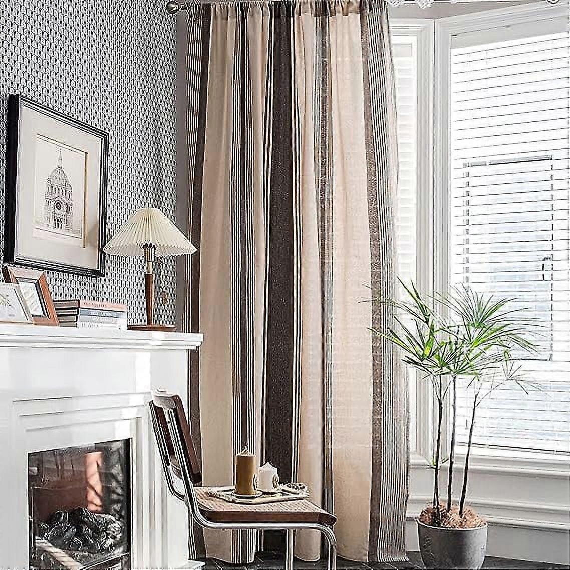 Zhuge Cotton Linen Striped Curtain Panel, 59"x87", Coffee, Farmhouse Style, Room Darkening, Rod Pocket, 1 Piece
