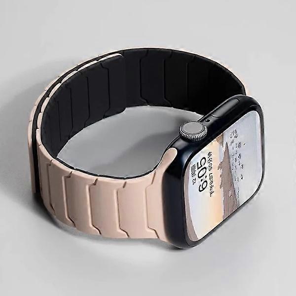 Magnetic Silicone Strap compatible with Apple Watch Ultra 2 49mm, Series 9-3, SE, 38-44mm, Milk Tea Black S10