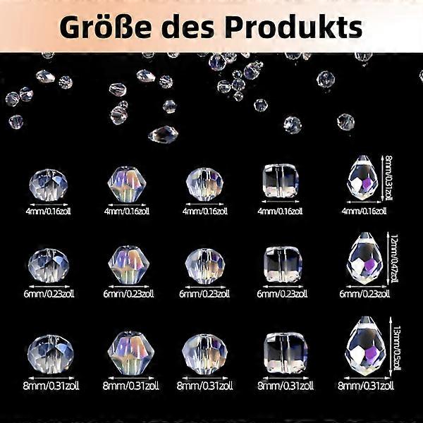 Pack of 600 faceted beads, 4/6/8 mm crystal glass beads, beads for threading, glitter beads, clear crystal glass with container for crafts,
