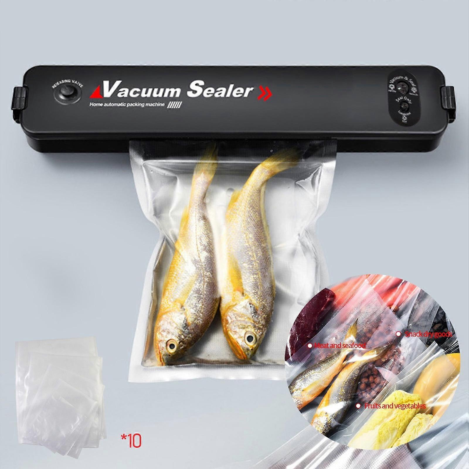 Vacuum Sealer, Food Vacuum Sealer Machine, Automatic Food Vacuum Sealer For Food Preservation Atmospheres Sealing Packing System, ForCooked Food Cooking And Foo Feature: Quantity: 1Pcs Material: Plastic Color: Black Product size: 36.5x8x5cm /14.3x3.14x1.96in Packing size: 37.5x8.5x7cm /14.76x3.34x2.75in Net weight:445g/0.98lb Gross weight: 498g/1.14lb Power: 80W Maximum sealing width: 30cm /11.81in Descrition: 【Save Money & Keep Fresh 】Food vacuum sealing can effectively prolong food preservation time, but also make cooking and meal preparation easier and more economical.It's convenient for your life, you deserve it. 【Easy Operation & Continuous Sealing】Automatic One-press vacuum sealer operation, Hand-free design with intelligent LED indicator lights, easy to use. Vacuum speed 8-15 seconds,continuous sealing and short cool down time, save your time. Wide Range of Applications】This vacuum sealer includes two sealing modes to provide your food with Suitable preservation Approach based on the type of food you want to sealant.You can choose between vacuum sealing mode and sealing mode for food.The vacuum sealing mode is just suitable for textured bags and corner bags, non-textured bags cannot be vacuum sealed,It is also possible to select the vacuum level you need by tapping the pump. 【Premium Quality for Airtightness : Vacuum sealers Protection food up to 5 times longer than traditional Approach. It is made of safe and durable material to offer you a proper food storage. 【Compact Storage Space】The overall size is slim and the design is exquisite, which can save valuable space in the kitchen when storing. The weight of the sealing machine is also very light, you can easily pick up and use. Package Content: 1 x Vacuum Sealer Machine 1 x power cable Each unit is equipped with 10 vacuum bags of 6.69*9.84in size Feature: Quantity: 1Pcs Material: Plastic Color: Black