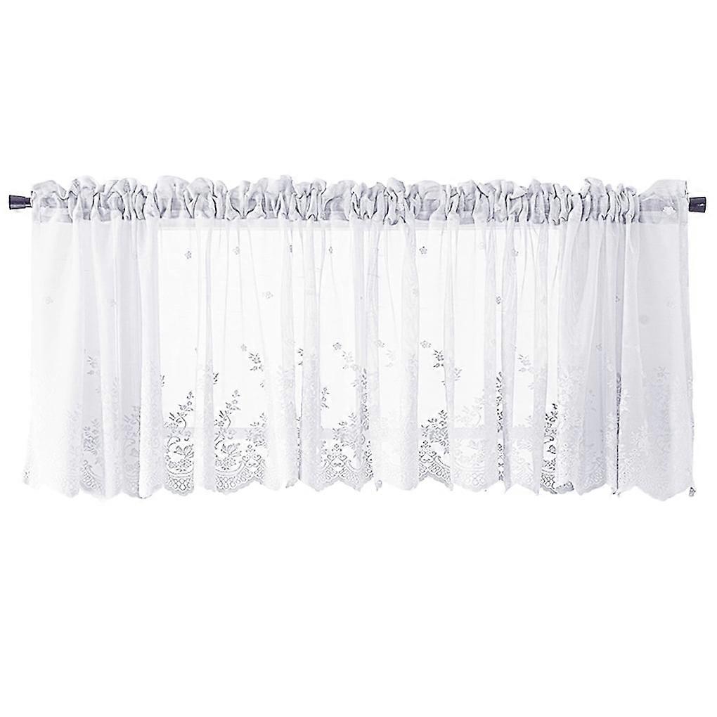 Jygee Lace Cafe Kitchen Ruffle Window Drape Valance Semi valance Lace Transparent Voile Curtains Window white 74x61cm