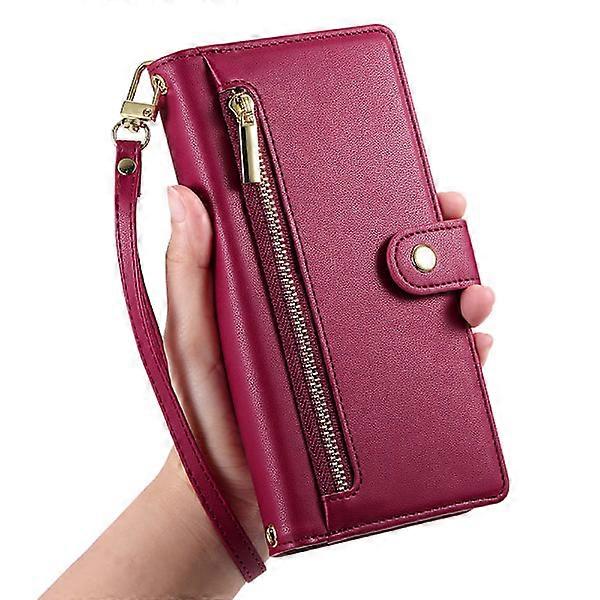 Mobile wallet compatible with iPhone 16 series, holds phone & cards, protects card magnetism, red, compatible with iPhone 16 Pro