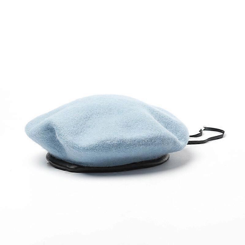 Men Casual Faux Leather Trim Beanies Cap Wool Blend Beret Hat Army Military Hat