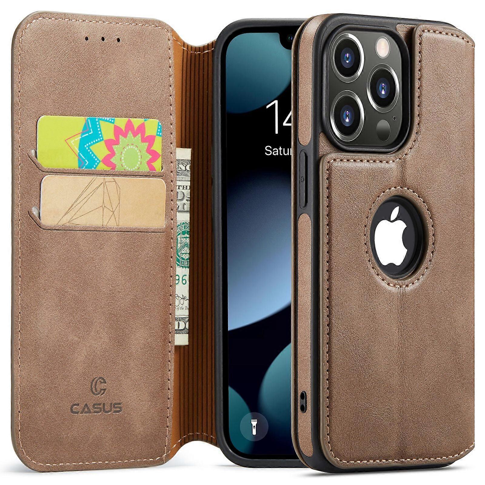 Casus Classic Wallet Case Leather Logo View Card Holder Cover for compatible with Apple compatible with iPhone 14 Pro Max,Slate