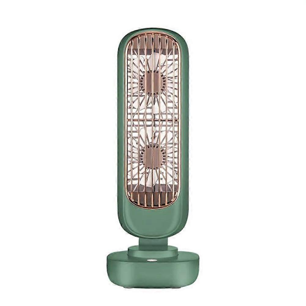 New Retro Double-Leaf Tower Fan Office Desktop Fan Vertical Portable Charging USB Small Fan - Green(Built-in Battery 2000mAh)