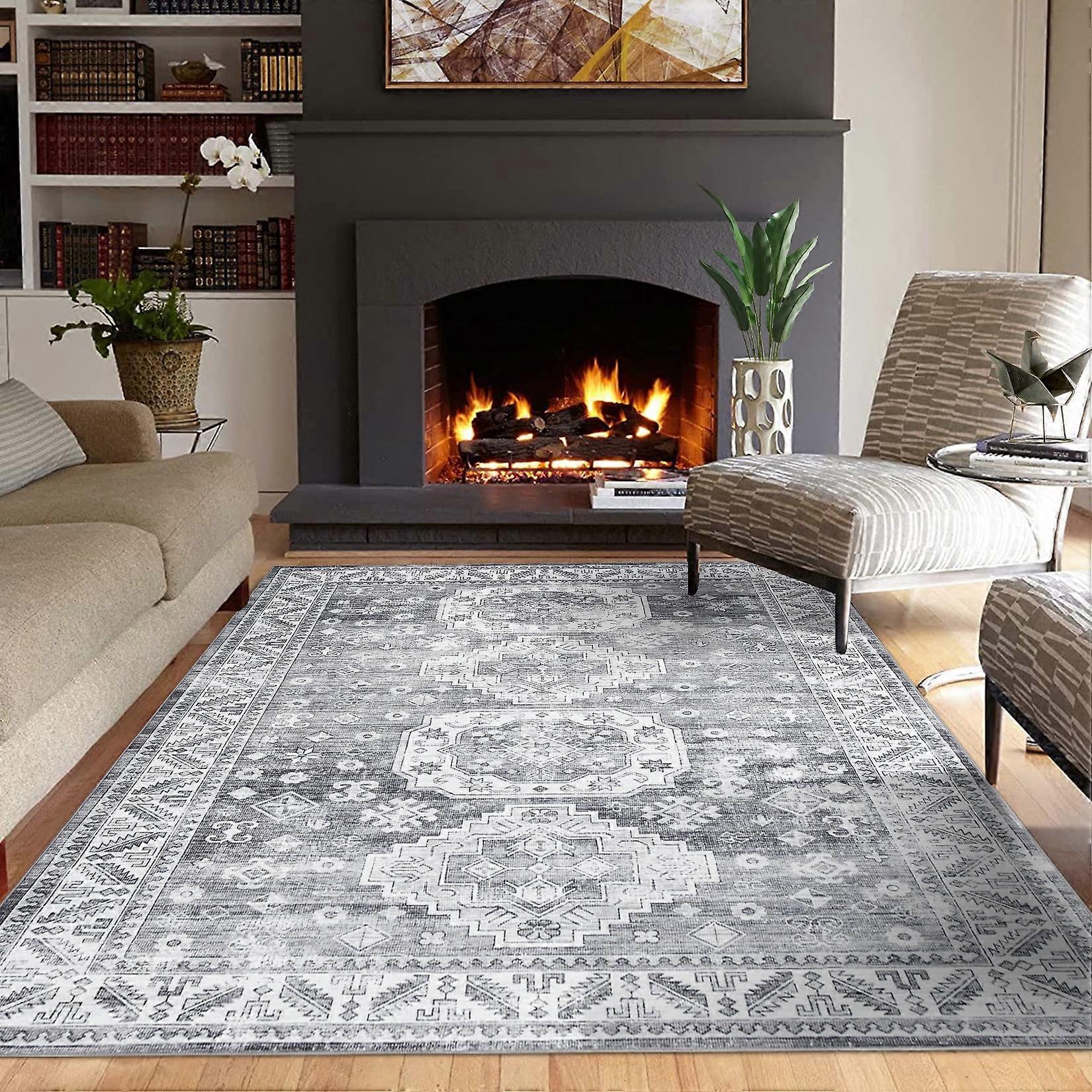 WhizMax 4' x 6' Area Rug Indoor Vintage Persian Rug Machine Washable Rug Low Pile Non-Slip Distressed Area Rug for Living Room Bedroom, Gray