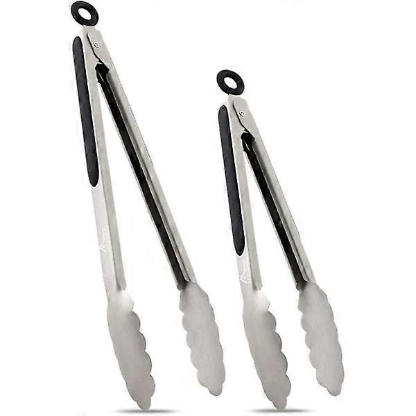 Stainless Steel Kitchen Tongs Set of 2-9\" and 12\", Locking Metal Food Tongs Anti-Slip