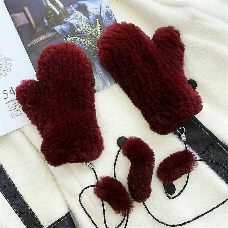 Ladys Warm Real Rex Rabbit Fur Gloves Fingerless String Knitted Wrist Mittens