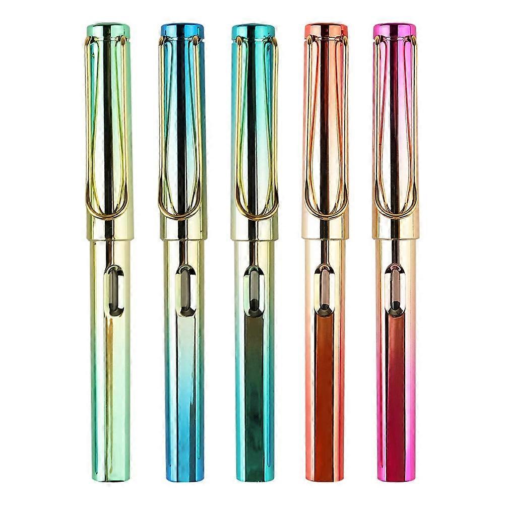 NUOLUX 5Pcs Students Practice Calligraphy Pen Portable Colored Fountain Pens with Ink Sacs