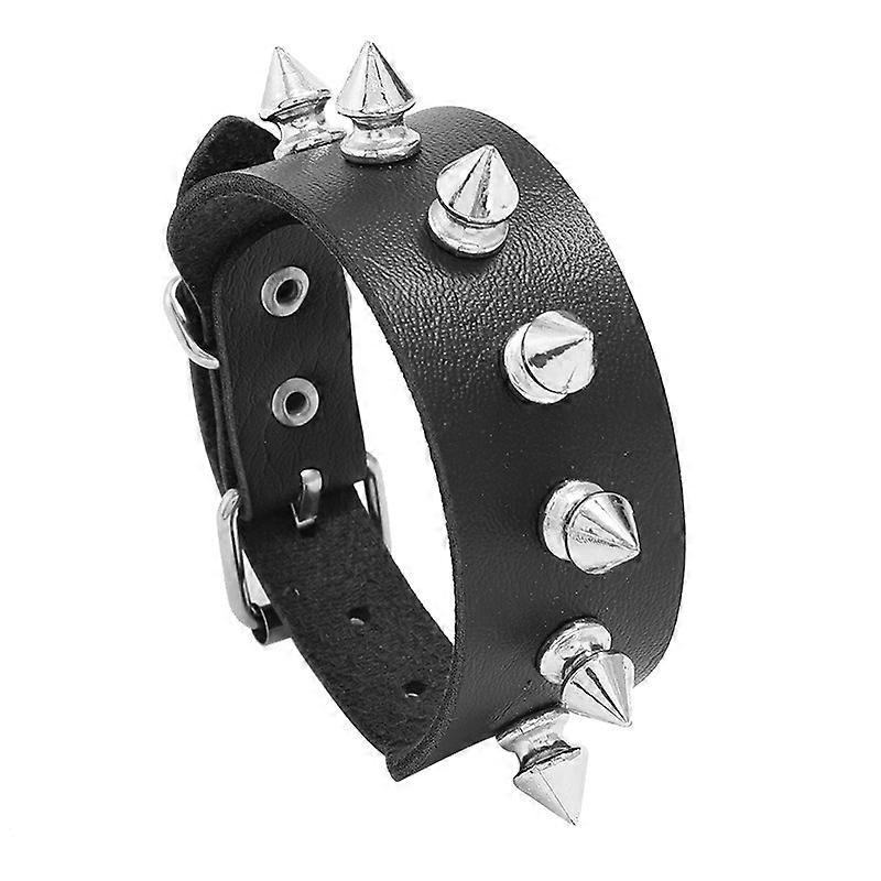 Punk Style ABS Plastic Spikes Bracelets for Men Women Black Artificial Leather Adjustable Bangles Gifts Fashion Jewelry