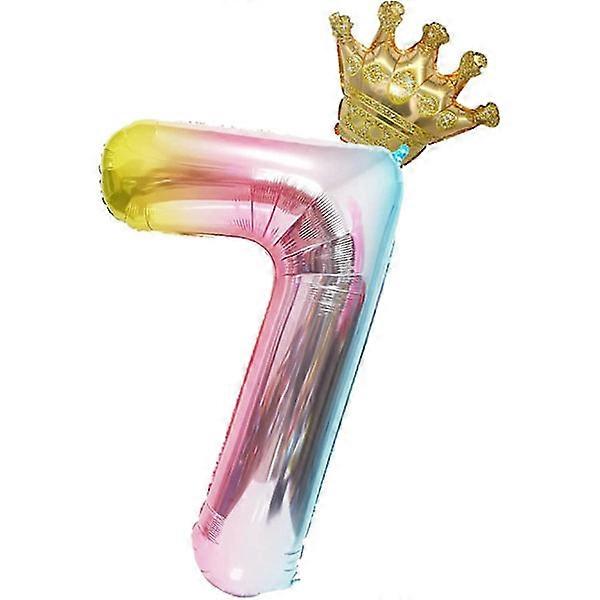 40 Inch Rainbow Number 7 Balloon with Removable Crown, Foil Helium Decor for Birthday, Wedding, Bridal Shower
