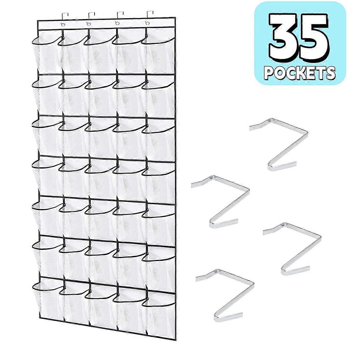 Shoe Organizer Over The Door 35 Pocket - Extra Large Capacity,Sturdy Oxford Fabric Hanging Shoe Storage,White