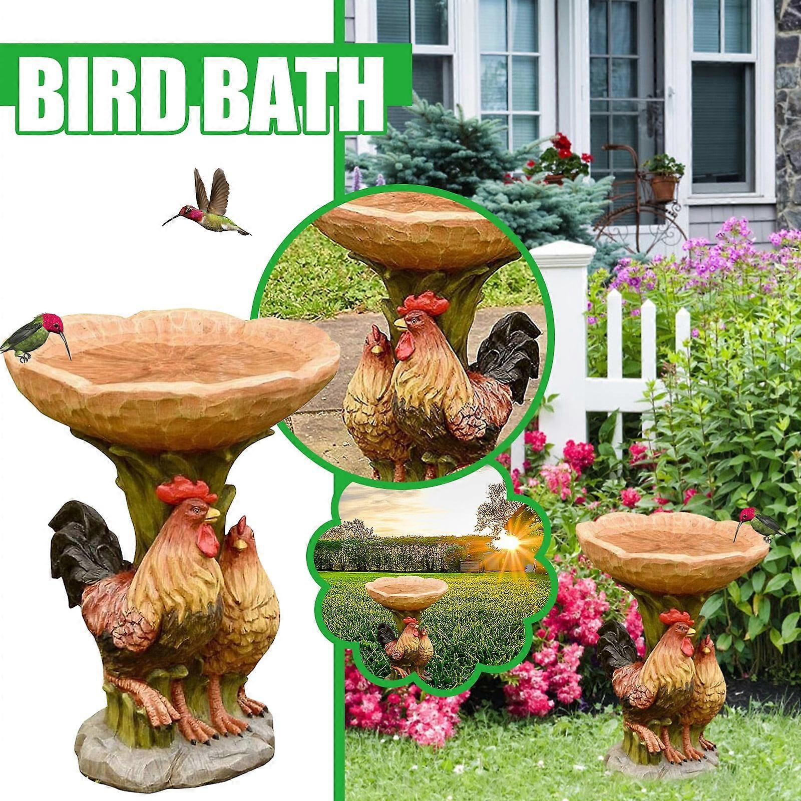 Yuseik Resin Rooster Water Basin, Polyresin Antique Garden Bird Bath Ornament, Compatible with Home Decor (1X)