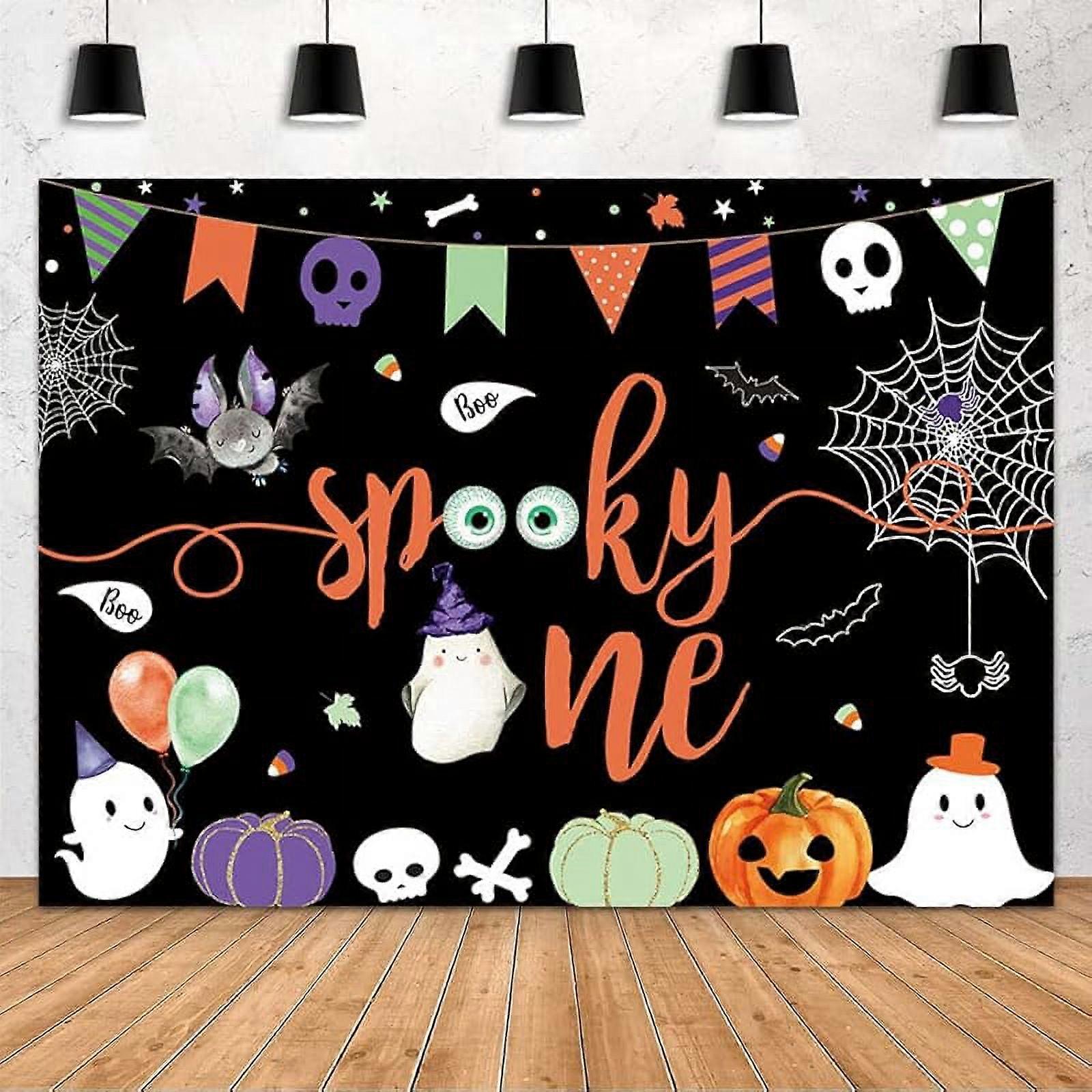 7x5ft Spooky Halloween 1st Birthday Backdrop for Boy, compatible with Halloween Boo Party Decorations, Photography Background