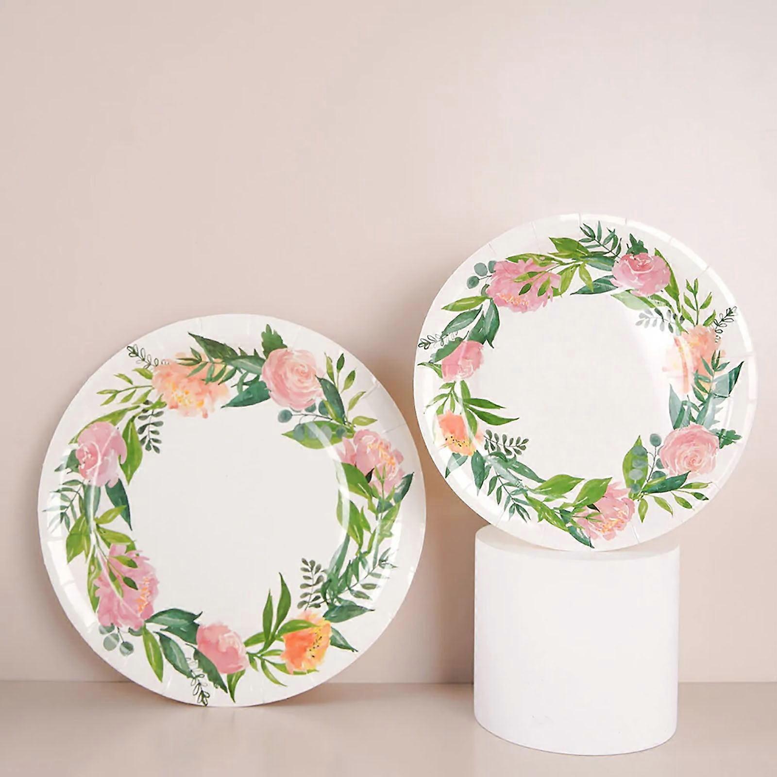 Efavormart 25 Pack | 7" Spring Floral Premium Dessert, Appetizer Paper Plates, Disposable Party Plates - 300 GSM