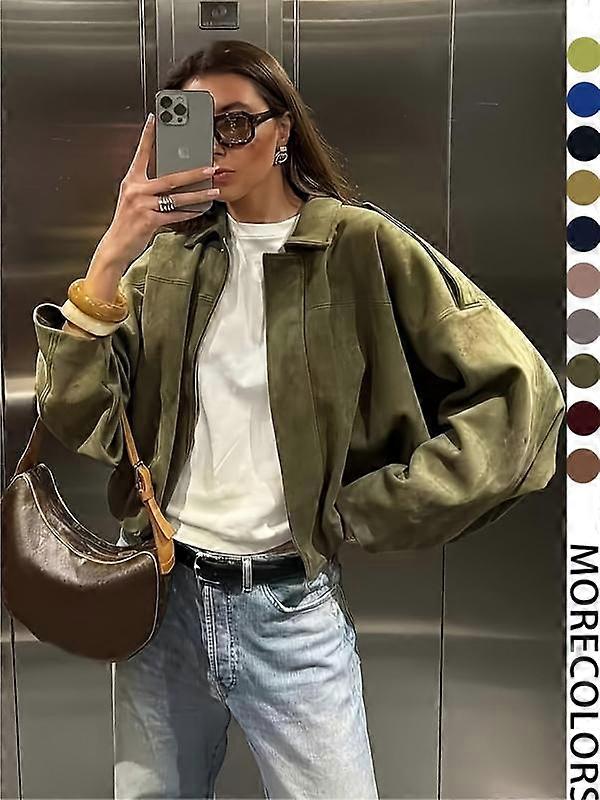 New Spring Autumn Military Short Jacket, Casual Loose Fit Women's Coat, Trendy Army Color Outerwear for Daily Wear