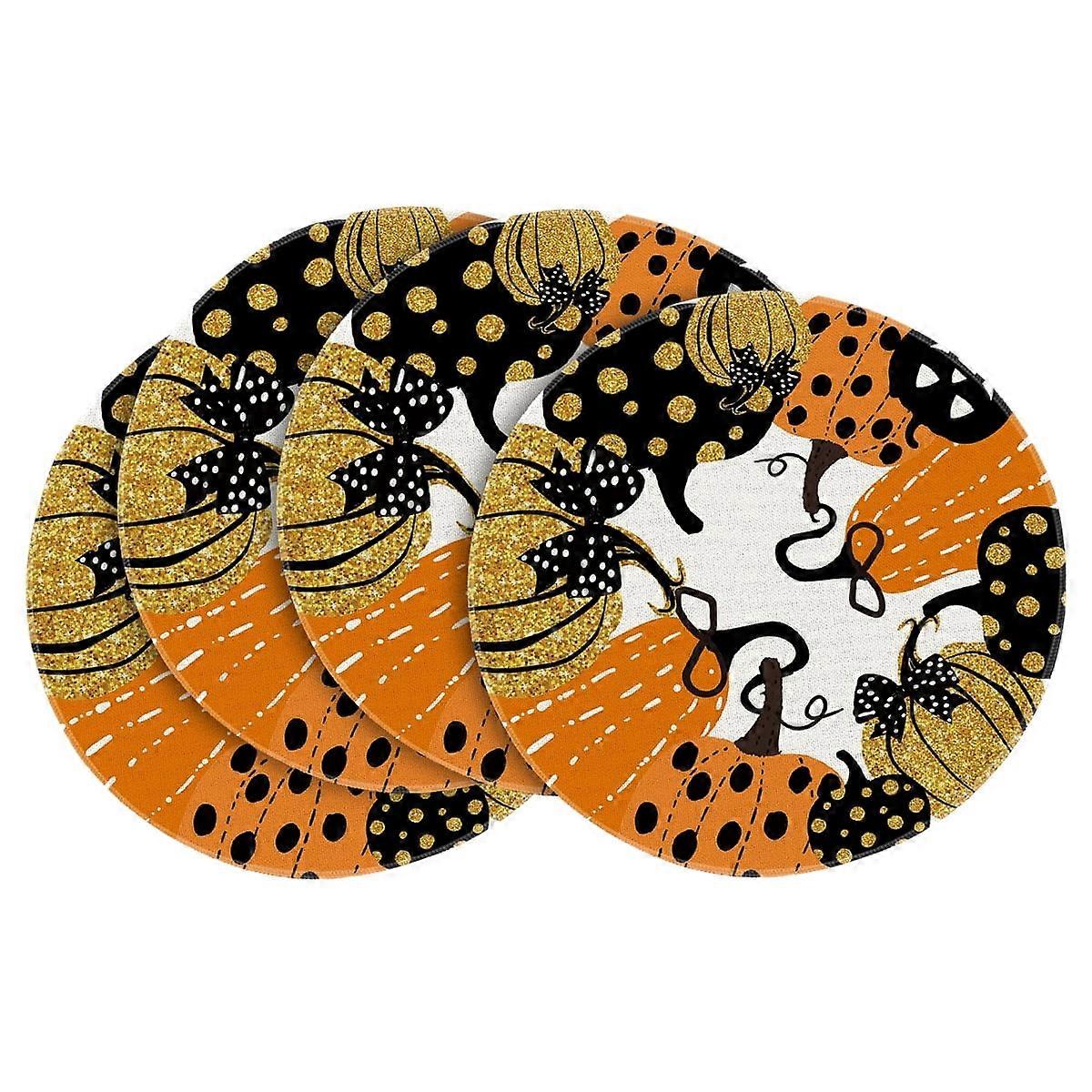 Sm:)e Halloween Jack-O-Lantern Pumpkin 15 Inch Round Placemats Set of 4