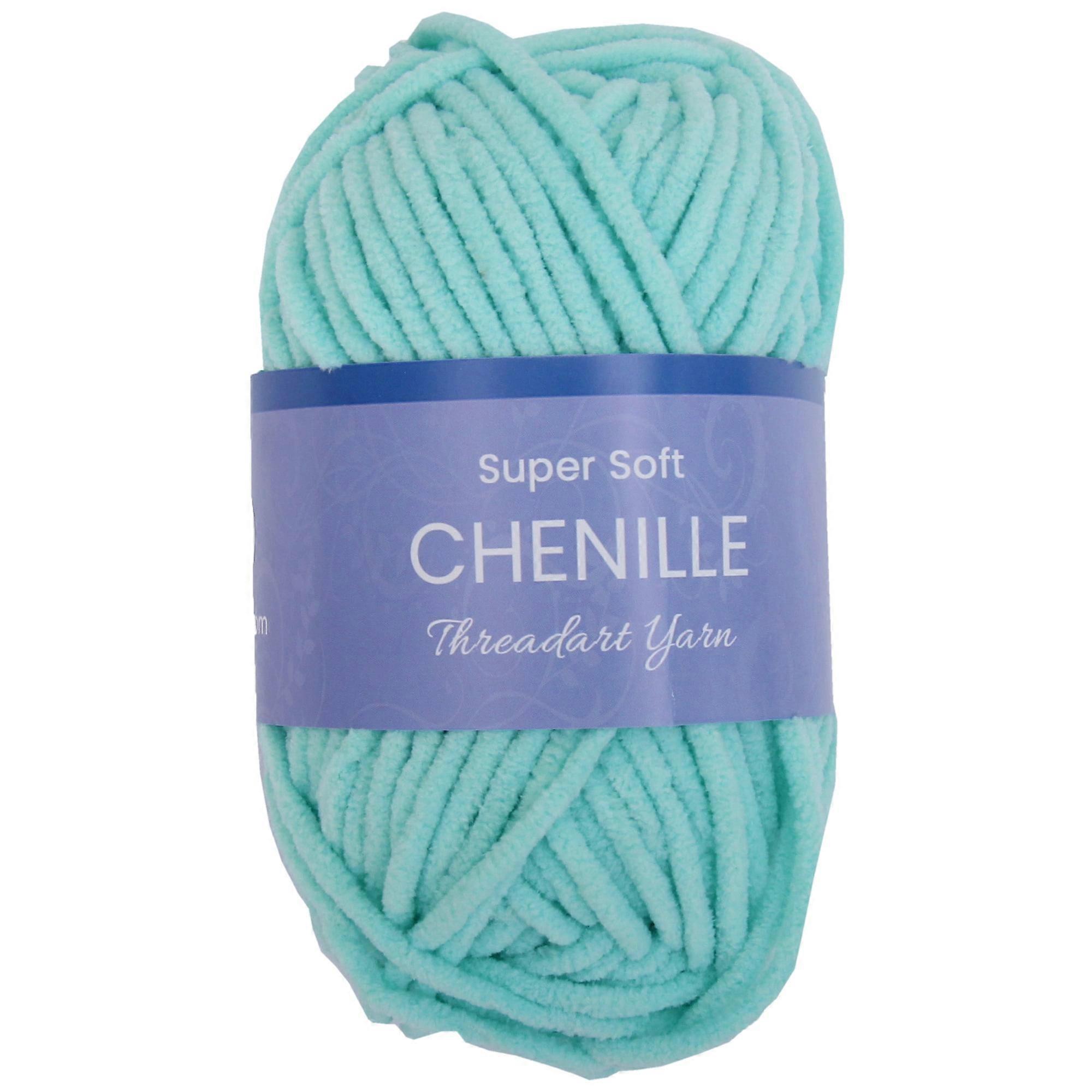 ThreadArt Chenille Yarn for Crocheting, Knitting, Amigurumi, Super Soft Plush Velvet Yarn - Light Aqua - 50 Gram 60 yds #5 Fluffy Yarn Skeins - Plush Yarn Super Soft Chenille Yarn is one of ThreadArts high quality crocheting yarns. Made from high-quality polyester fibers, this yarn delivers a plush, velvety texture that’s gentle on the skin, perfect for snuggling up in comfort. It is super popular to make crochet plushies or any kind of project that requires soft and chunky yarn. This yarn can be used in a variety of projects including like baby Items, home decor, crochet amigurumis and more. With its thick, substantial strands, our chenille yarn is easy to work with, allowing for quicker completion of your projects while providing a rich, full-bodied look. Available in a wide range of colors and set, each skein has 50 grams, 60 yards of yarn. Machine wash in gentle warm water, no bleach. Recommended needle is 4.5mm-5.0mm.