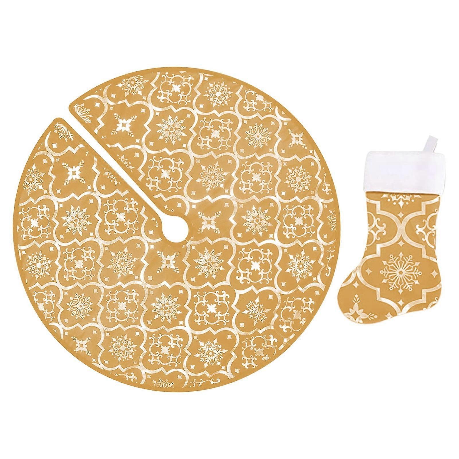 LYCAQL 48" Christmas Tree Skirt with X Mas Stocking, Snowflake Collar, Soft Cover Mat Decor Compatible with Holiday Ornaments