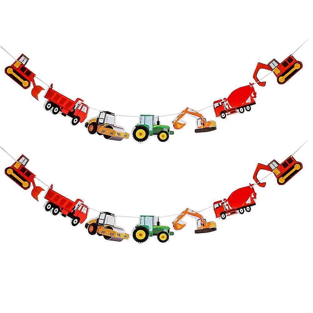 2 Pcs Happy Birthday Decorations Flower Garland Cartoon Banner Truck Themed Party Pull Flowers