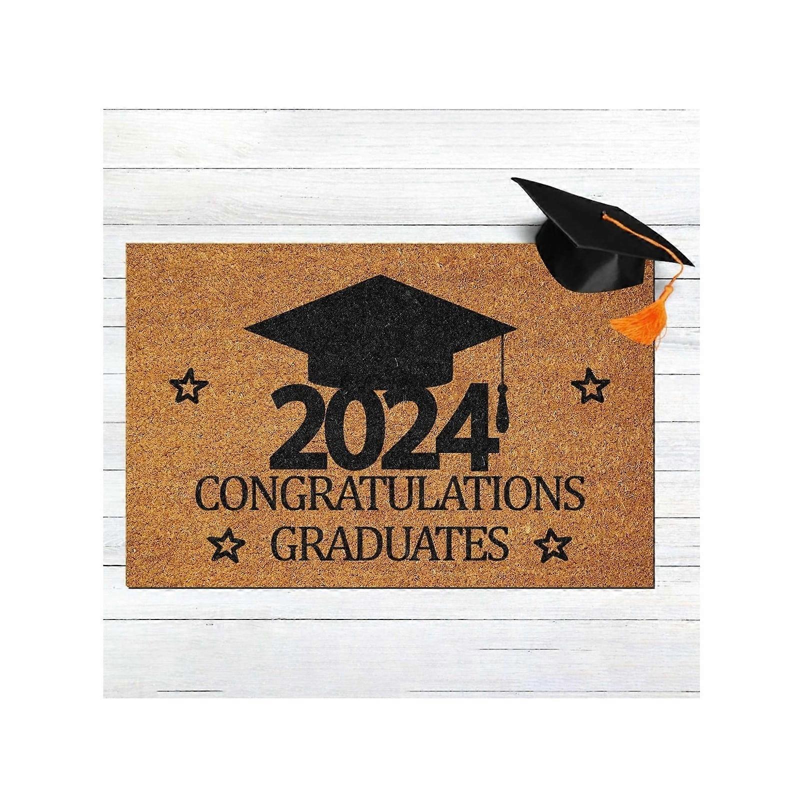 Funny Door Mat 2024, Welcome Doormat for Outside/Inside, Graduation Gift, Brown "Step On This Mat" Decor