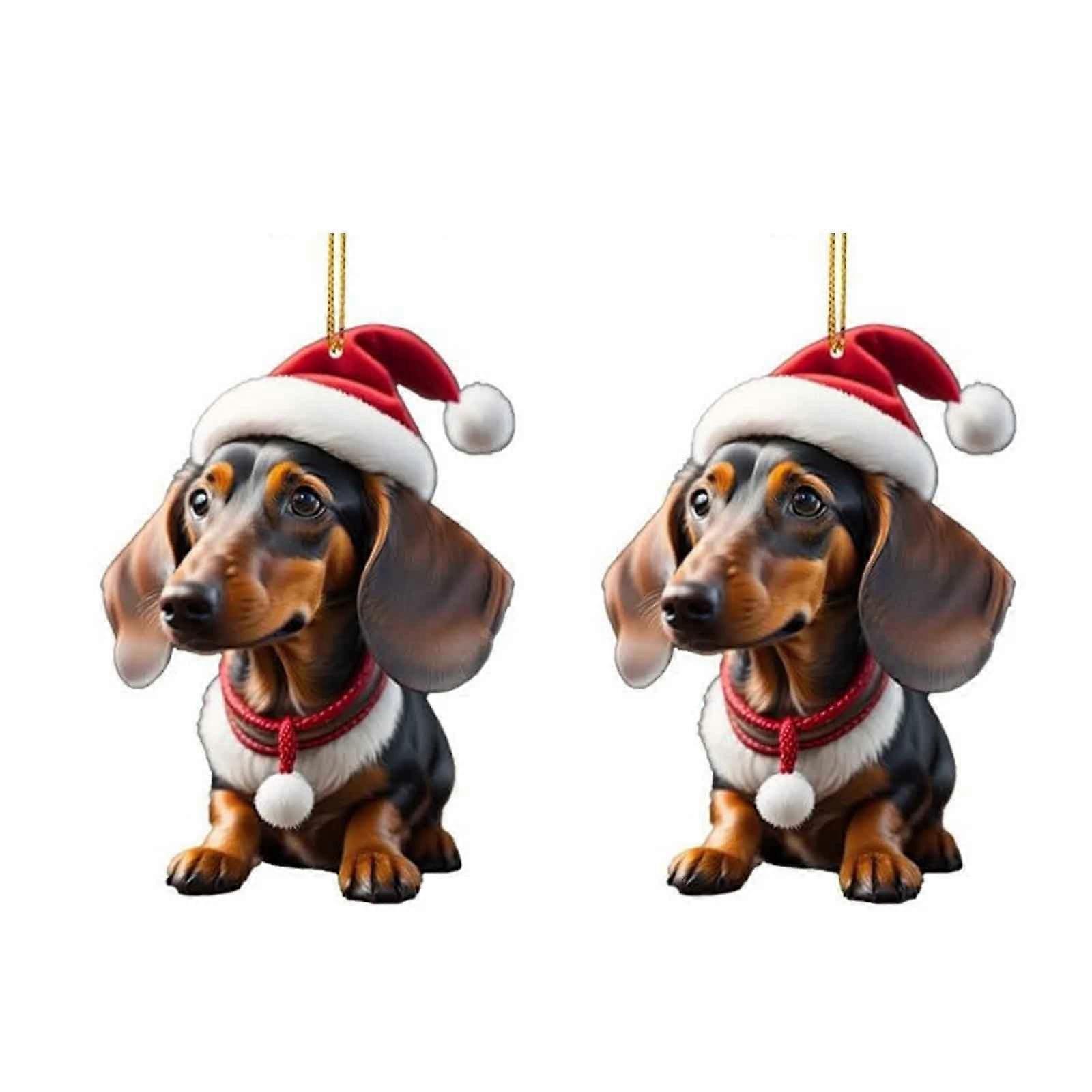 Wadada Christmas Ornament, Funny Dog Xmas Decor, Dachshund Ornaments for Tree Car Backpacks, Dog Lovers Gift Idea (2Pcs)