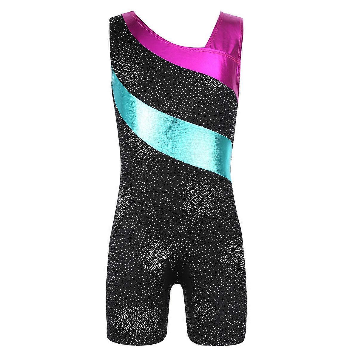Girls Gymnastic Leotard Biketard Glittery Ribbon Stripe Tumbling Dancing Unitard