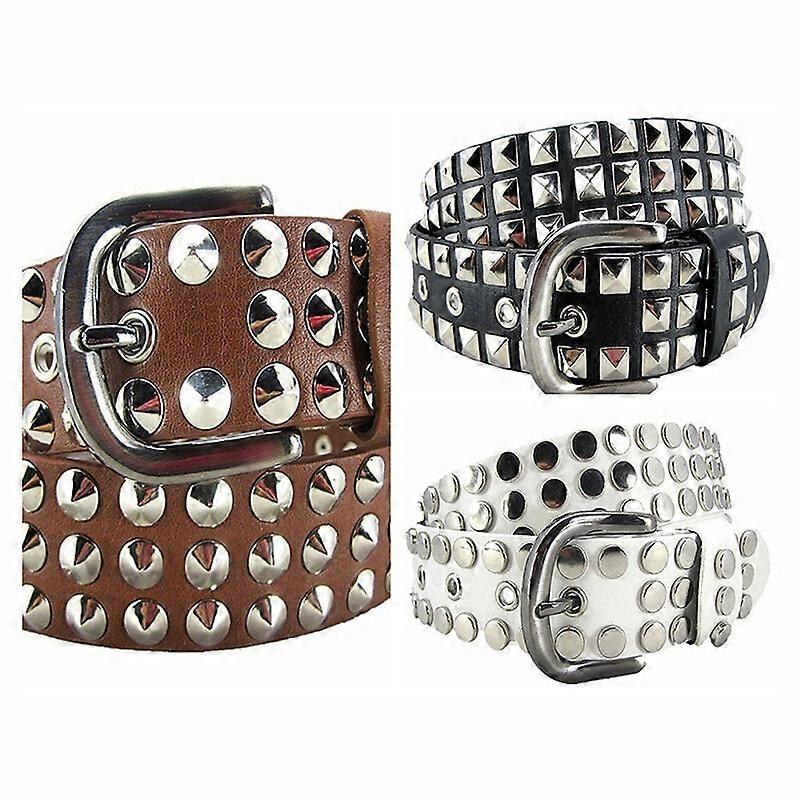 Conical Pyramid Studded Belt Bonded Leather Circle Rivet Removable Buckle Unisex