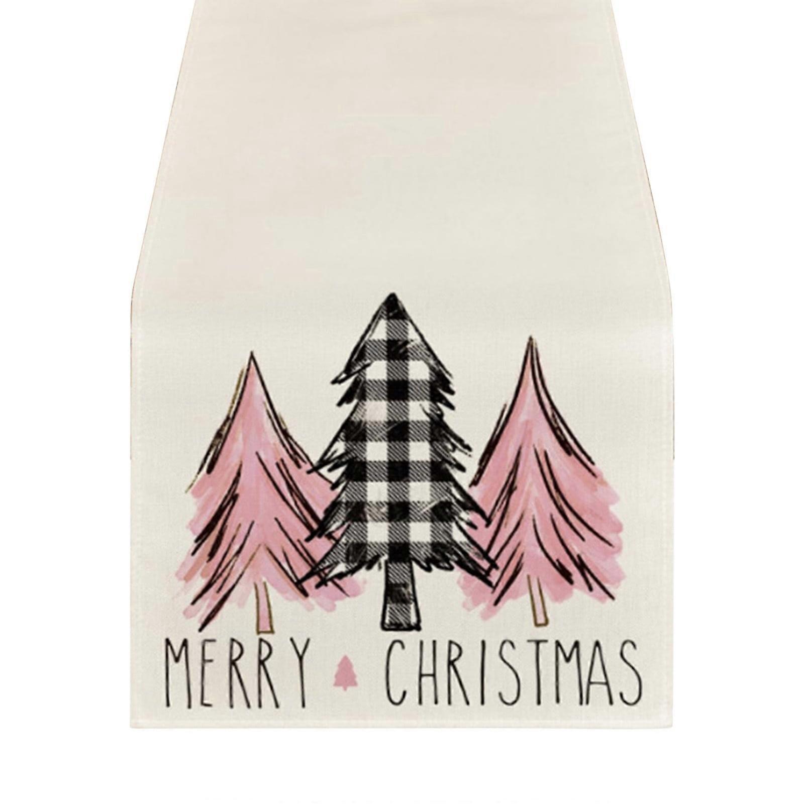 LSLJS Christmas Table Runner 13"x72" Linen White Xmas Tree Pattern Cloth, compatible with farmhouse holiday decor, Merry Christmas baubles for party