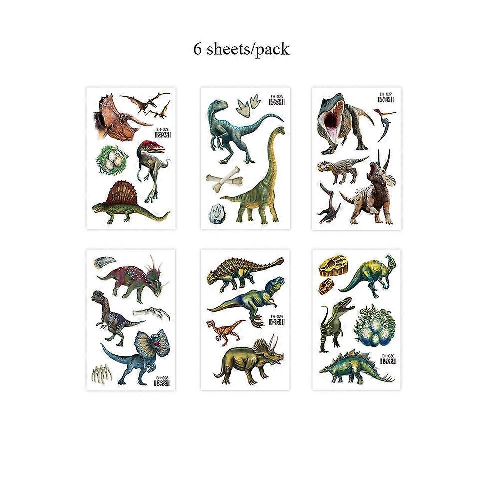 6pcs/set Dinosaur Temporary Tattoo Stickers Waterproof Animal Cartoon Fake Tattoo Women Men Body Decor