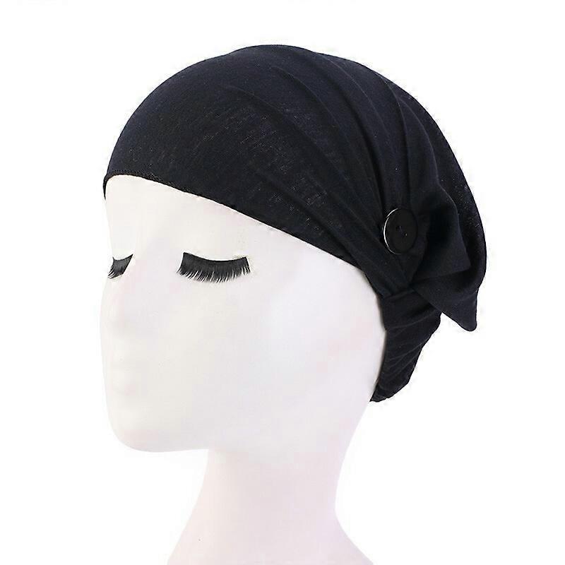 Women Button Turban Cap Headband Muslim Hijab Wrap Head Scarf Elastic Hat Beanie