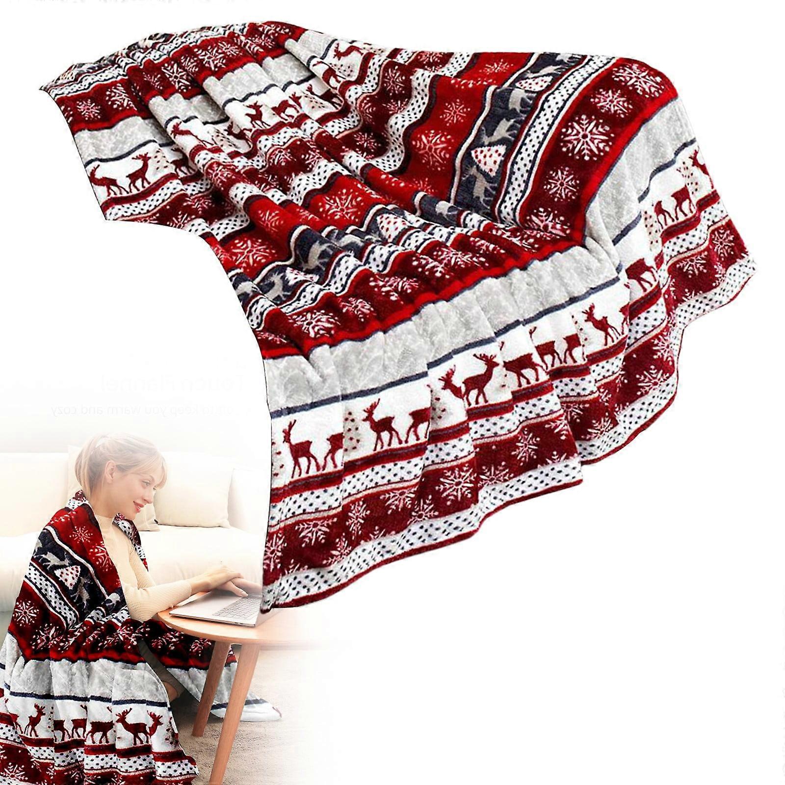 Premium Christmas Blanket Sherpa Fleece Throw | Plush Reindeer Design, Cozy Reversible Holiday Blanket for Sofa 70*100