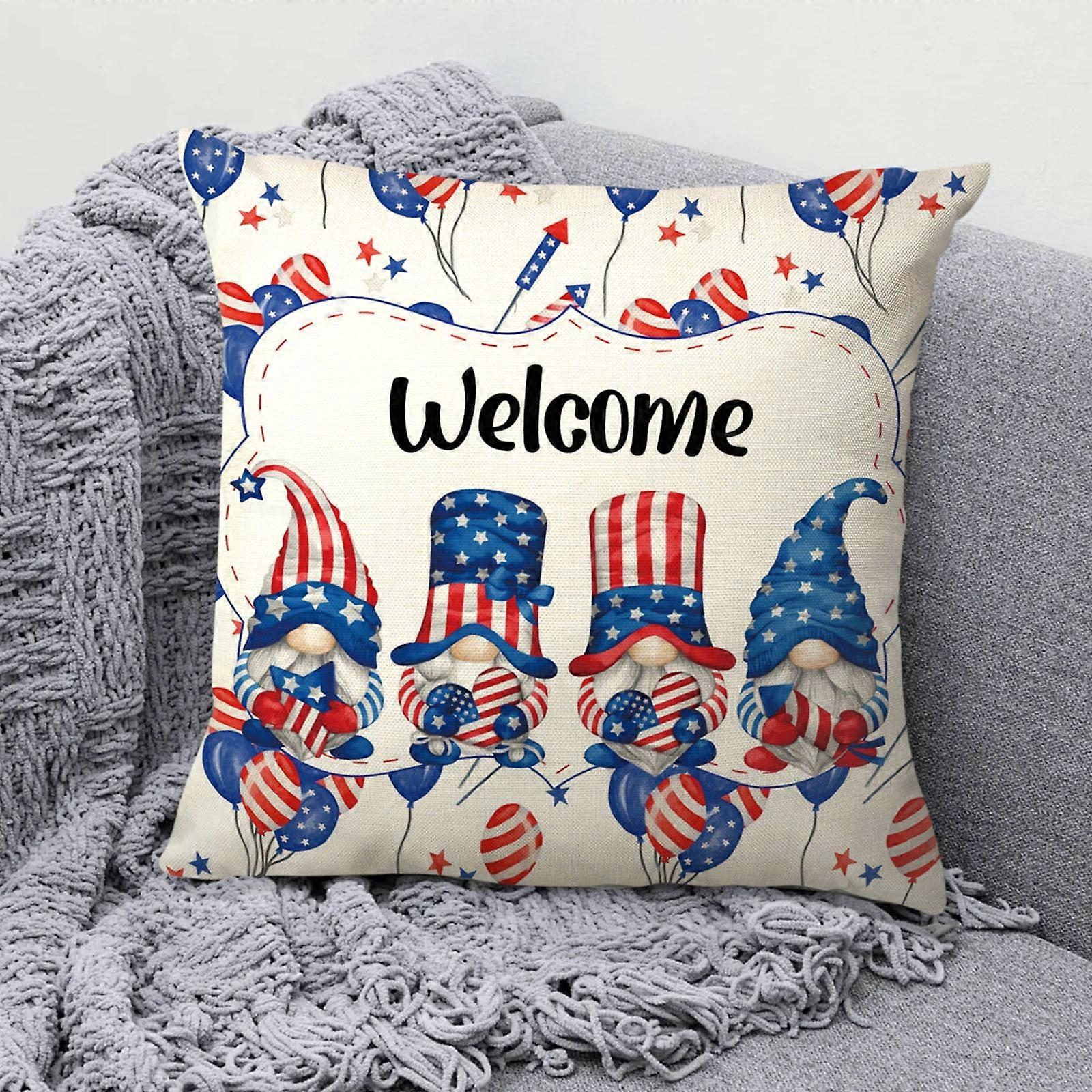 4th of July Decorative Pillow Covers - Patriotic Gnome Print, Skin-Friendly, compatible with Djunllk, for Memorial & Veteran's Day