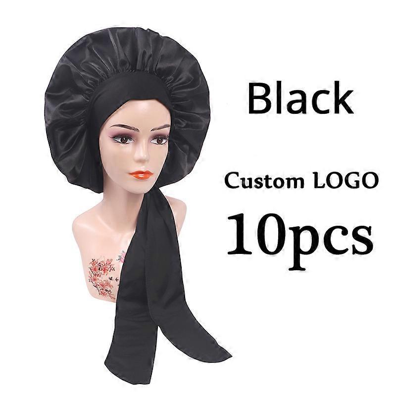 Custom Logo Satin Bonnet Queen Hot Pink Hair Silk Satin Bonnet With Tie Sleep Bonnet Night Cap With Wide Stretchy Band For Women