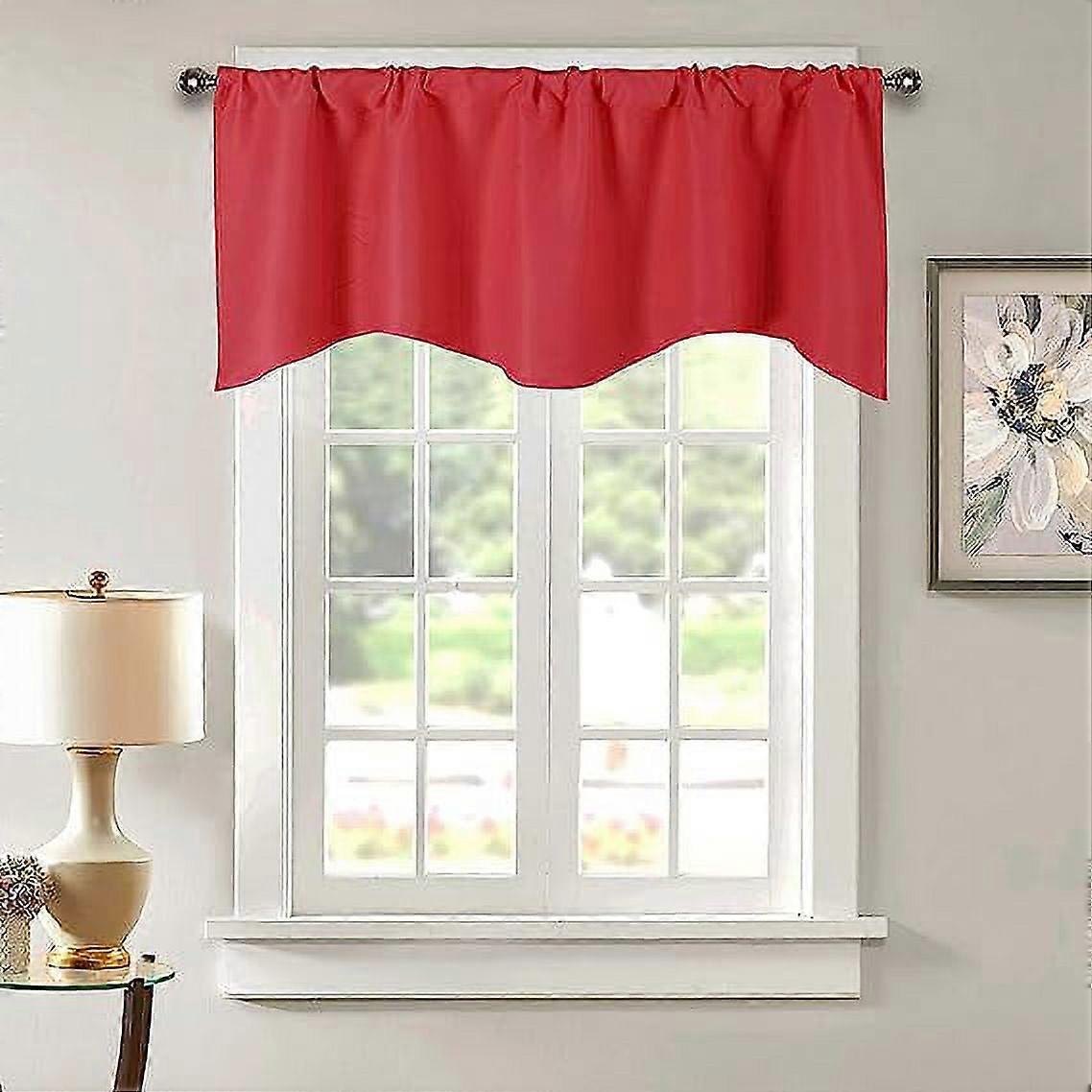 Namzi -a Solid Blackout Curtain Valance for Kitchen/Bedroom Rod Pocket Scalloped Valance Short Curtain Panels (52"x18",Red)