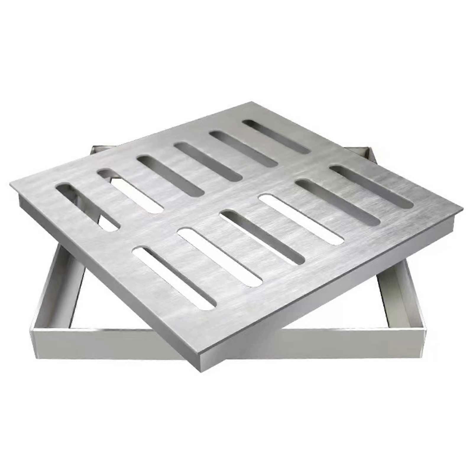 Stainless Steel Manhole Cover Frame Removable Outdoor Square 35x35 Cm 14x14 In For Yard Driveway Catch Basin