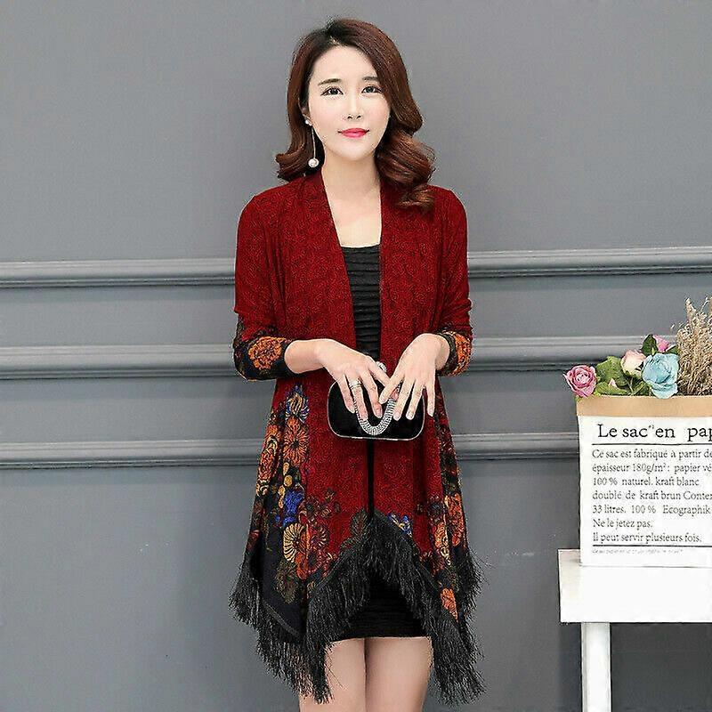 Ladies Plus Shawl Coat Ethnic Cardigans Embroidery Outwear Tassel Poncho Retro