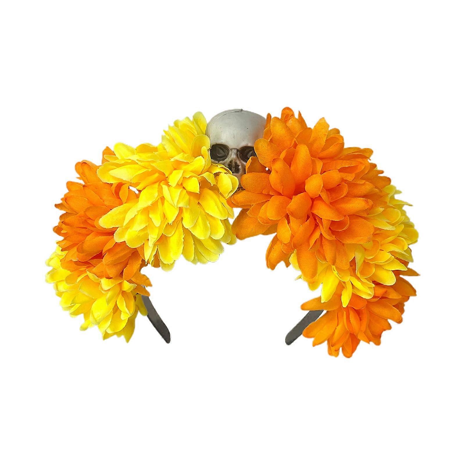 Wadada Yellow Flower Headband for Women, Halloween Ghost Floral Crown, Day of the Dead, Wedding, Maternity, Masquerade Accessory