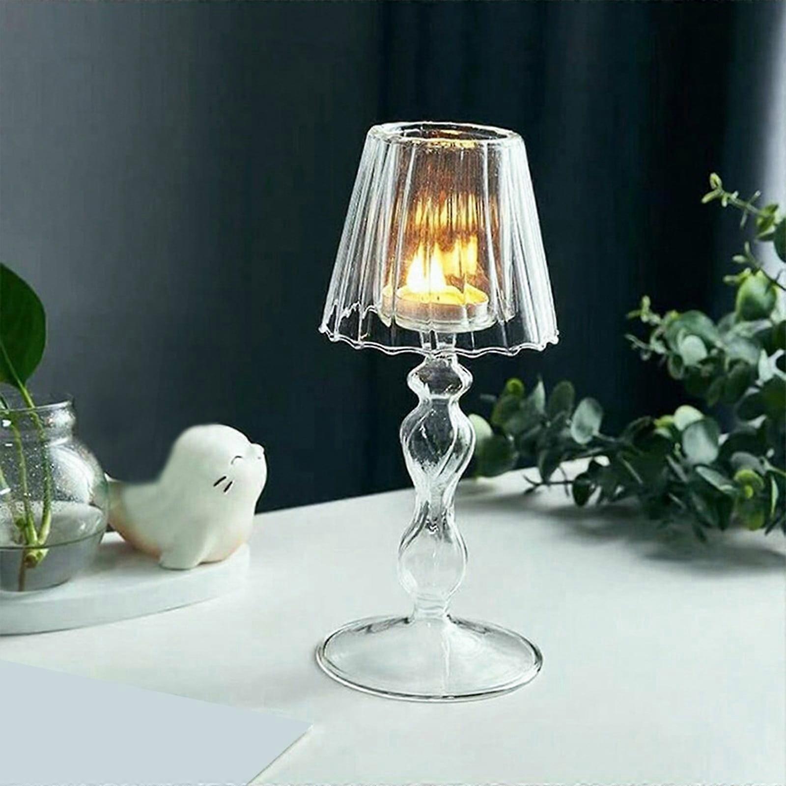 Sulaicai Desk Lamp Shaped Glass Candle Holder, Clear 7.28" Crystal Decorative Stand for Table, Wedding, Party, Festival Decor, Dinning Centerpieces