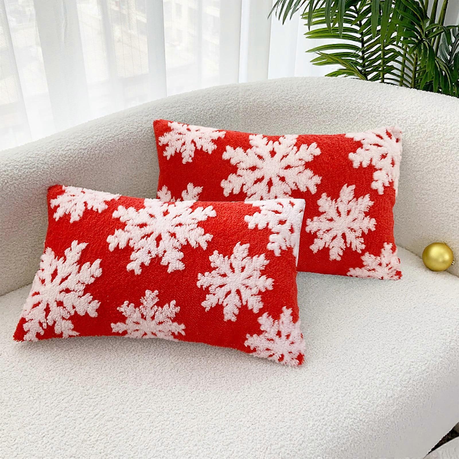 Christmas Cozy Fleece Snowflakes Pillow Cases 11.81*19.69 Inches, Compatible with Couch Bed Sofa, Clearance Gifts
