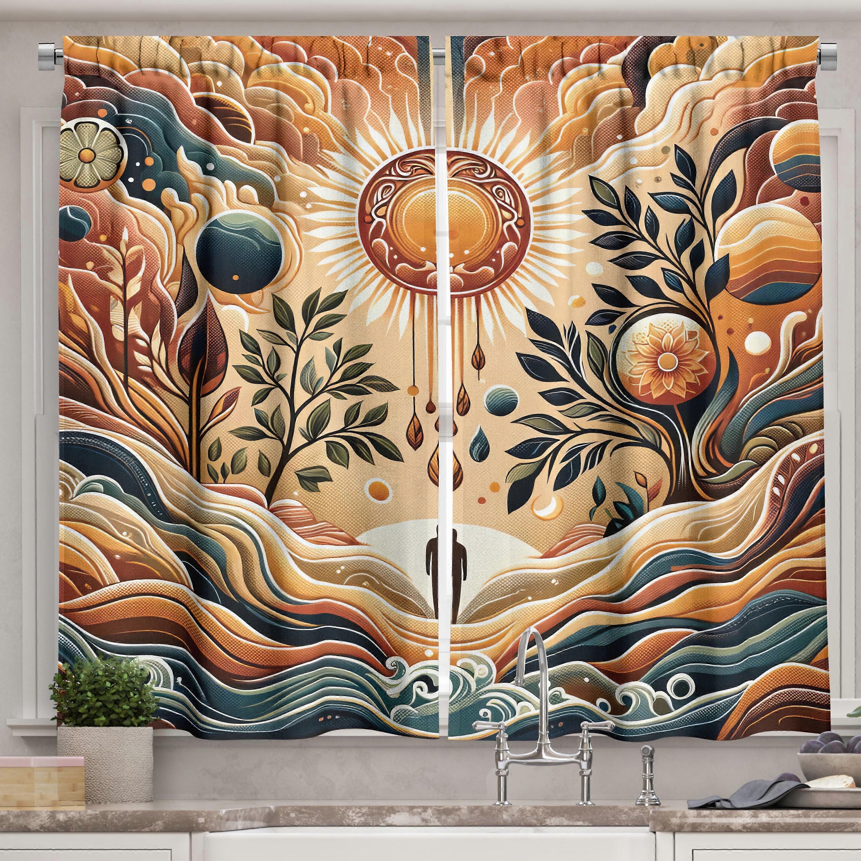 Ambesonne Trippy Kitchen Curtains, Bohemian Huddles of Clouds, 55"x24", Pale Brown Petrol Blue