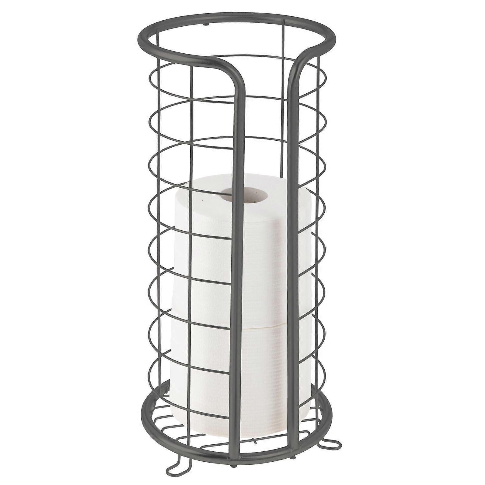 mDesign Metal Toilet Paper Holder Stand, Freestanding 3 Roll Reserve, Dark Gray