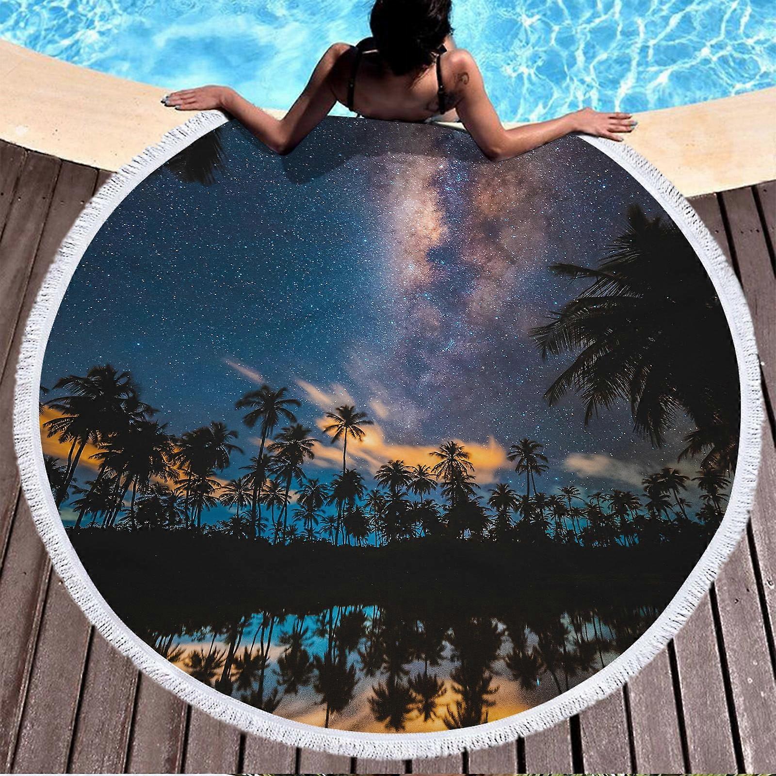Djunllk Coconut Leaf Round Beach Towel, Oversized Microfiber Blanket Waterproof Sandproof, Compatible with Summer Beach Vacations