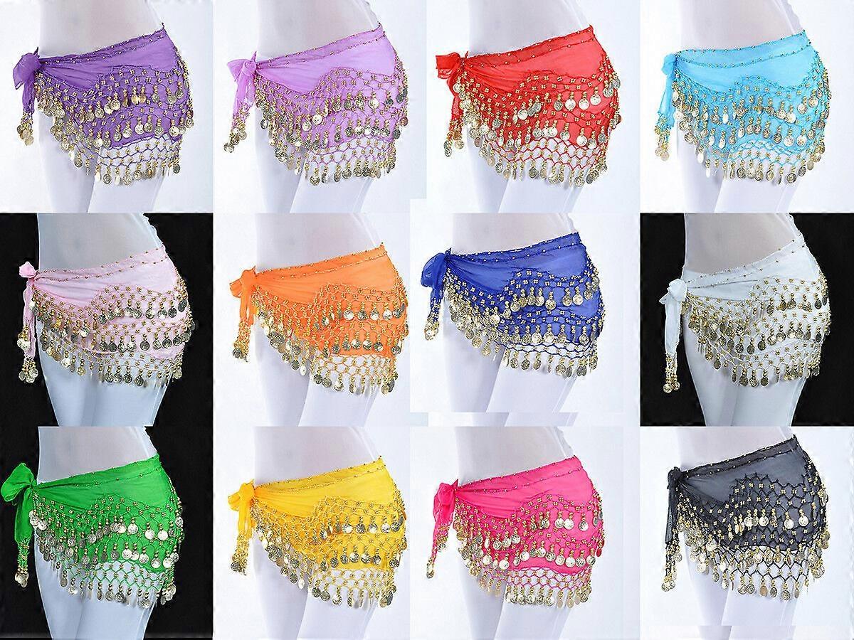 Women Chiffon Belly Dance Hip Scarf Wrap Belt Skirt Gold/Silver Coins Costume US
