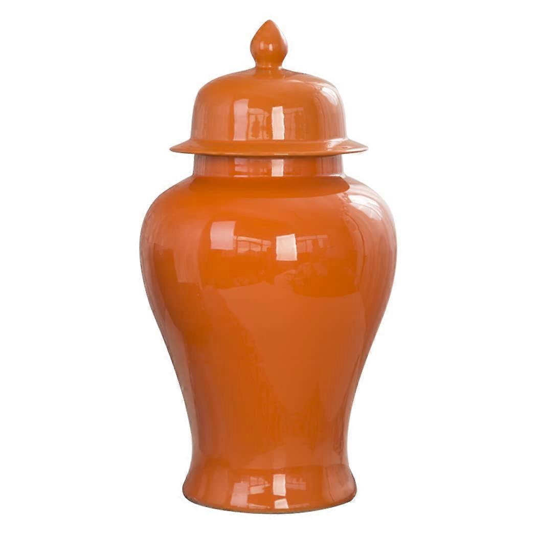 Large Orange Porcelain Ginger Jar with Lid, Traditional Chinese Ceramic Temple Jar for Home Decor