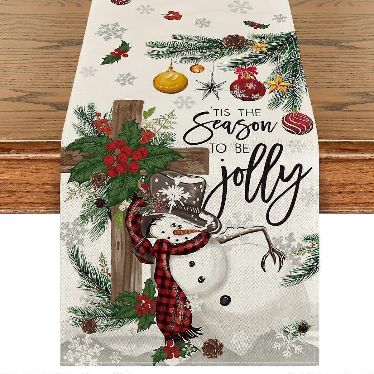 Christmas Table Runner 13x120 Inch Beige Polyester, Festive Holiday Design, Heat and Spill Protection