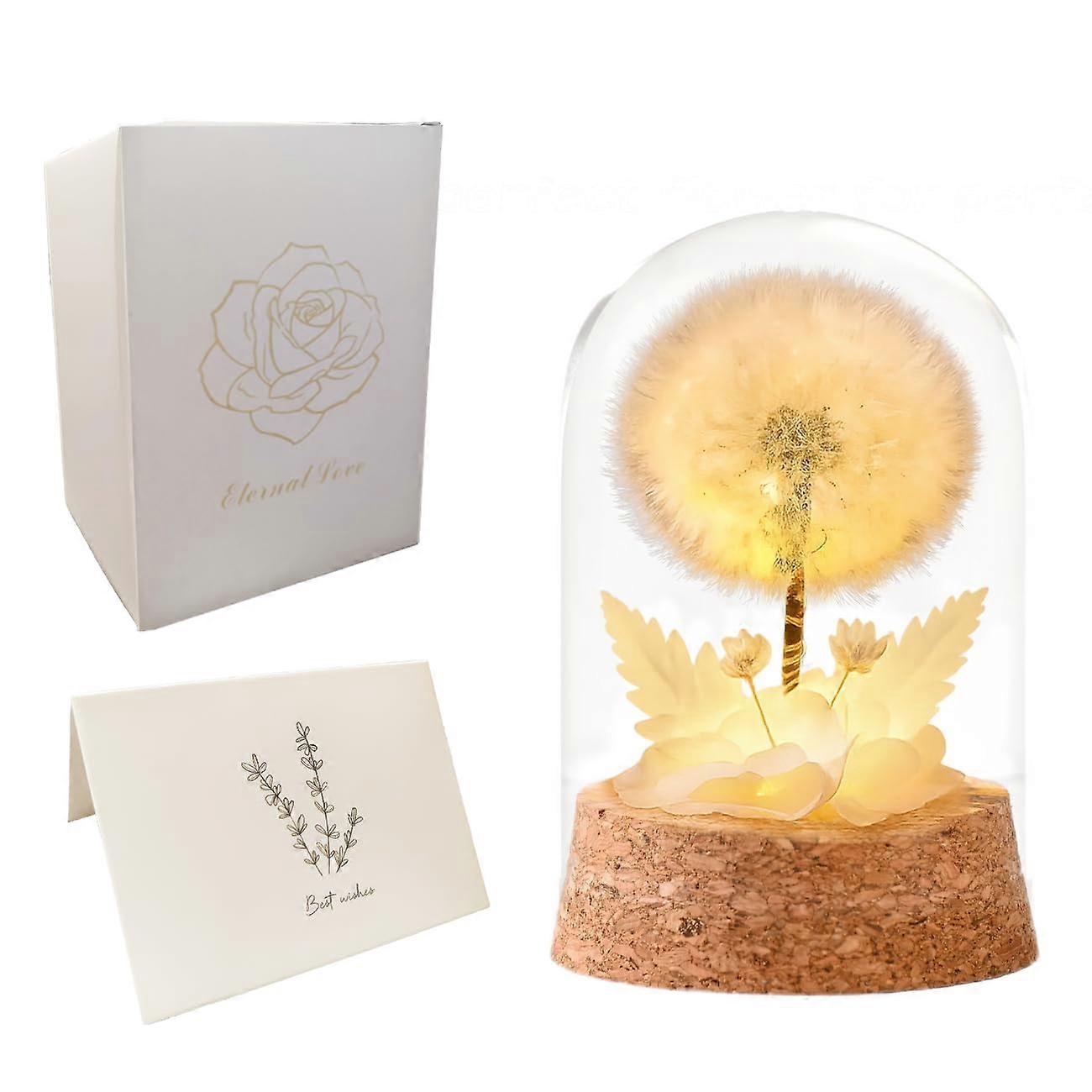 LED Glass Dome Flower with Preserved Real Dandelion, Warm LED Glow Gift for Women Valentines
